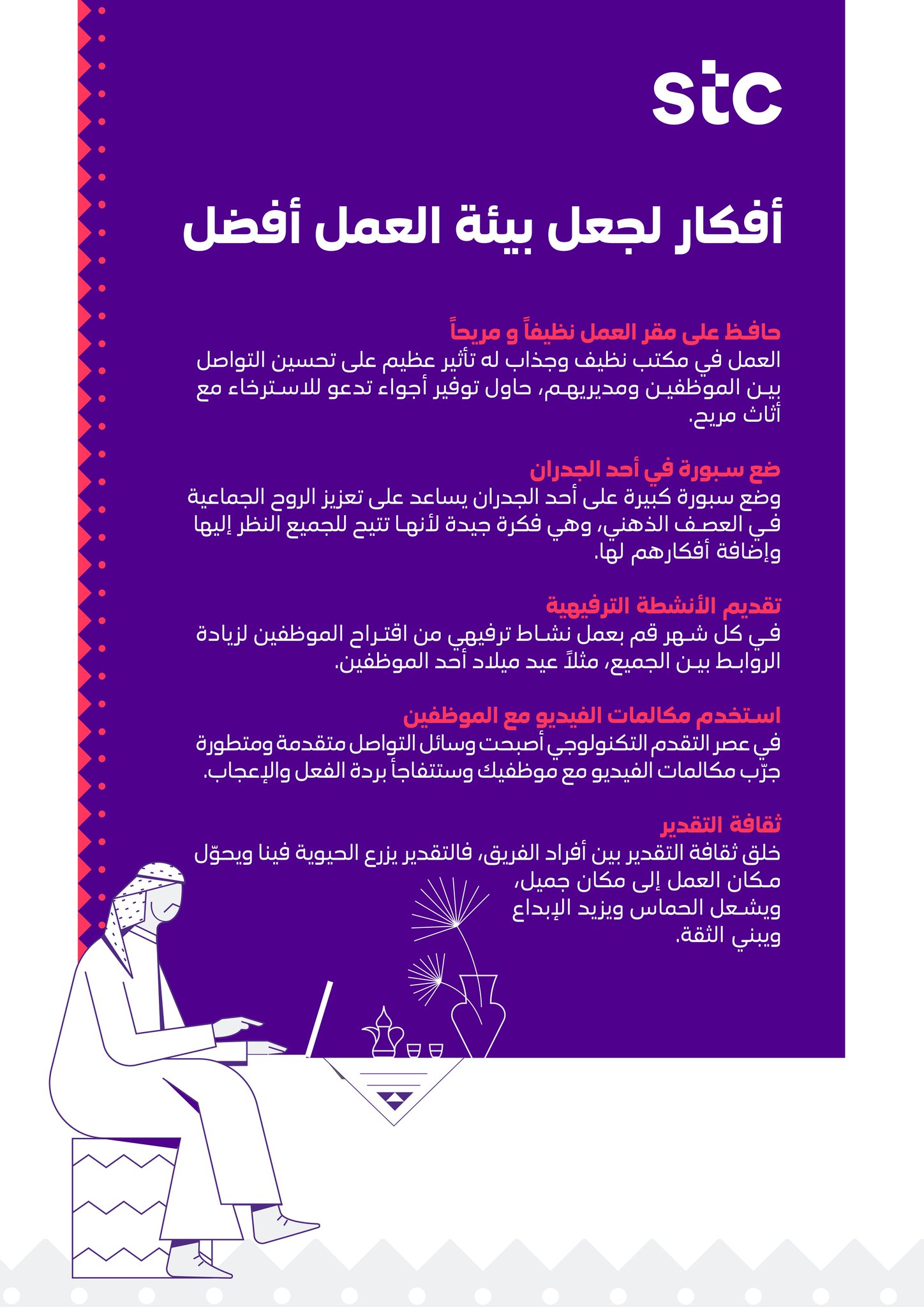 Stc السعودية On Twitter 5 أفكار لجعل بيئة العمل مريحة أكثر اخترناها لكم وإذا عندكم أفكار ثانية شاركوها معنا بالتعليقات