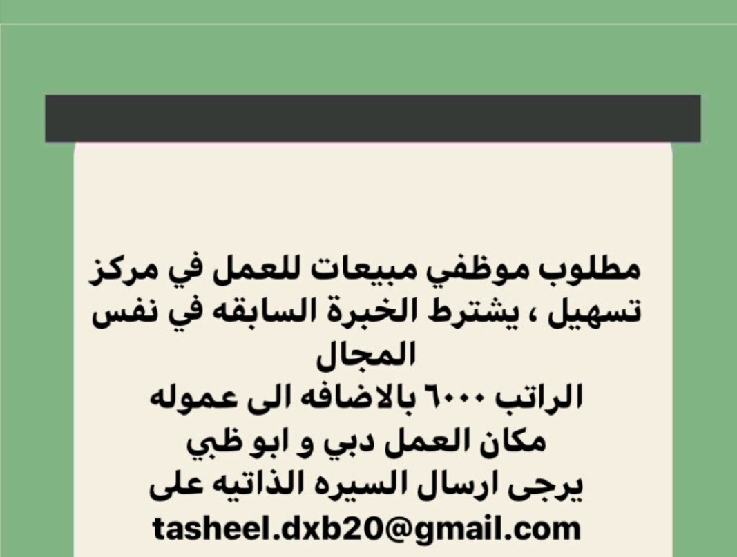 وظائف تسهيل 2021 بدبي وابوظبي مطلوب مبيعات مشرفون و كاشير و استقبال قدم من هنا