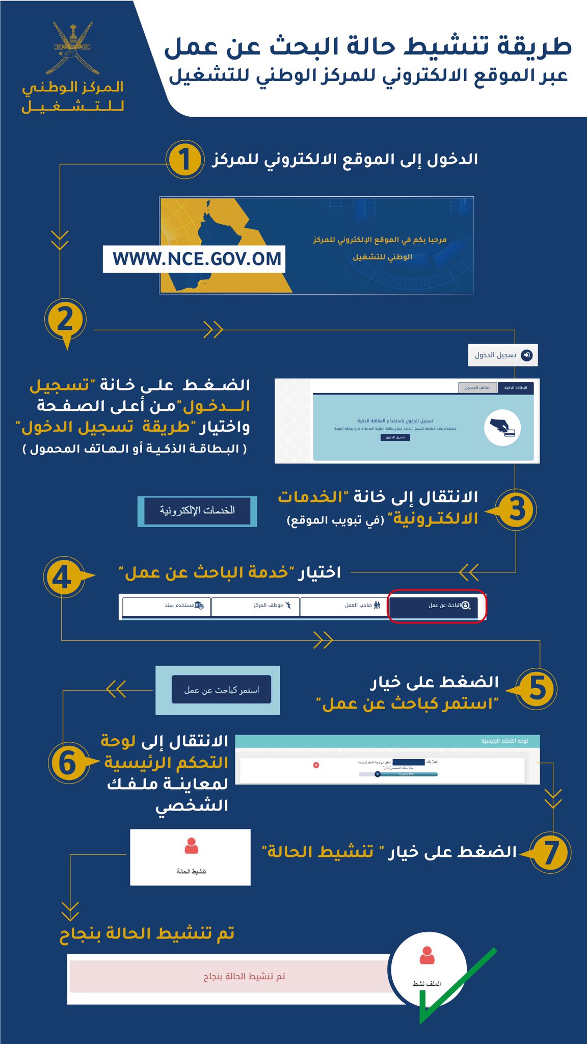 Twitter पर المركز الوطني للتشغيل نشارككم خطوات تنشيط حالة البحث عن عمل عبر الموقع الإلكتروني لـ المركز الوطني للتشغيل