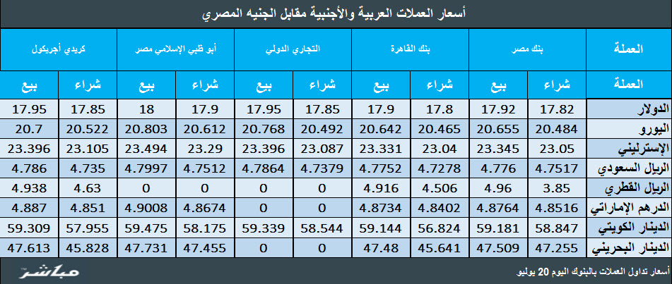 بنكي أسعار العملات اليوم في بنك القاهرة