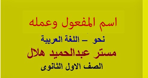 موقع الاستاذ عبد الحميد هلال اسم المفعول وعمله نحو الصف الاول الثانوى تيرم اول
