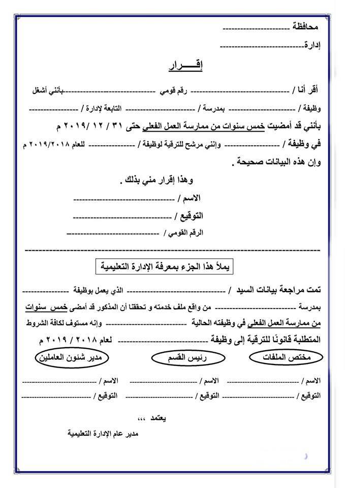 خاص لترقية المعلمين تحميل صحيفة حالة ورقيه الافادة على راس العمل اقرار الخمس سنوات