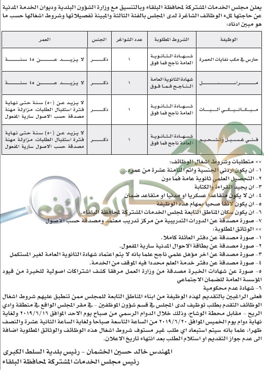 فرص عمل للشباب في مؤسسة حكومية في محافظة السلط لحمله الشهادة الثانوية فما فوق