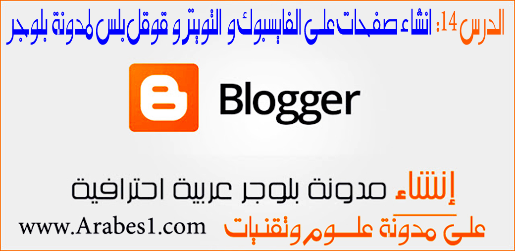 الدرس 14 كيفية إنشاء صفحات على المواقع الاجتماعية فايس بوك تويتر جوجل بلس لمدونة بلوجر