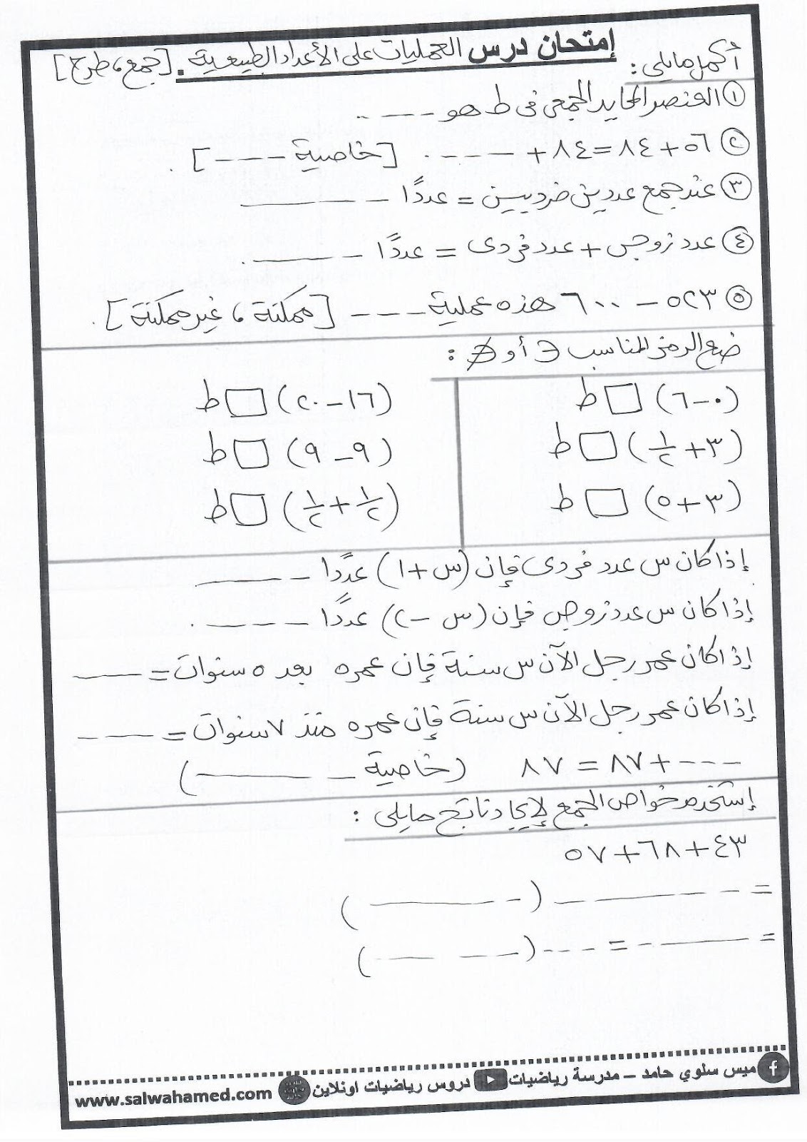 العمليات علي الاعداد الطبيعية الجمع والطرح للصف الخامس الابتدائي مدونة ميس سلوى حامد