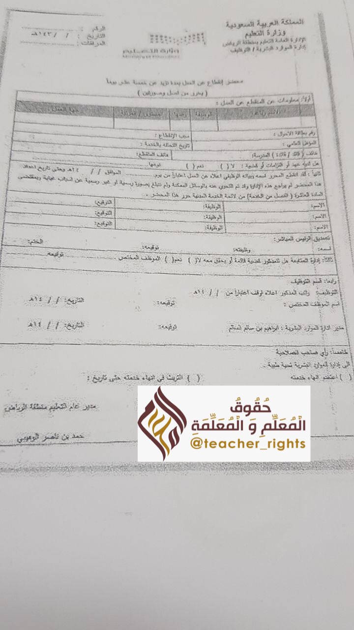 البوابة التعليمية En Twitter محضر إنقطاع عن العمل بمدة تزيد عن خمسة عشر يومي ا حقوق المعلم والمعلمة رتويت