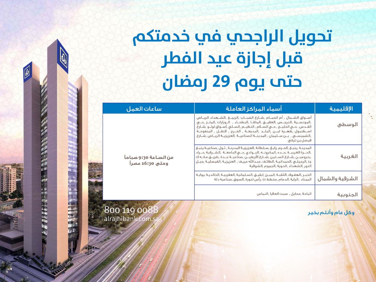 اوقات عمل الفروع خلال إجازة عيد الاضحى Al Rajhi Bank مصرف الراجحي Facebook