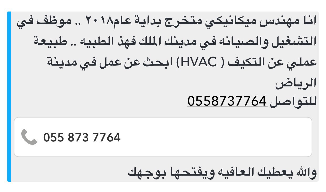 م تكييف فارس الفريدي On Twitter مهندس ميكانيكي سعودي يبحث عن وظيفة لديه خبرة في مجال التكييف م تكييف