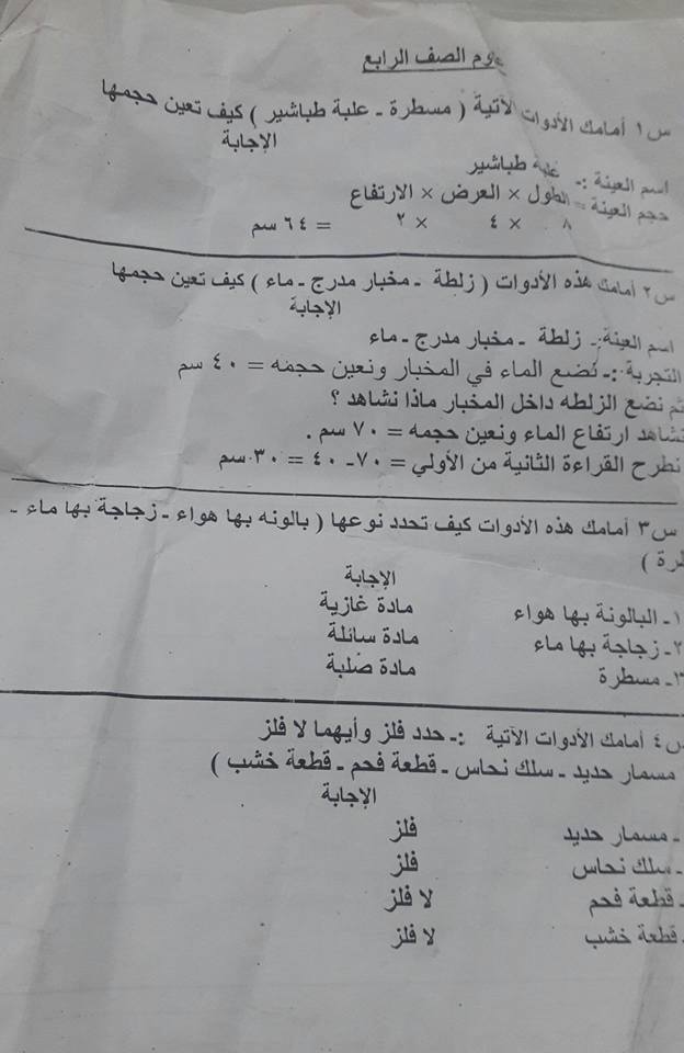 نماذج امتحان العملي العلوم الصف الرابع الابتدائي عام تجريبي 2017
