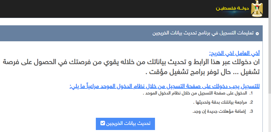 برنامج تحديث بيانات الخريجين و العمال سوق العمل الفلسطيني