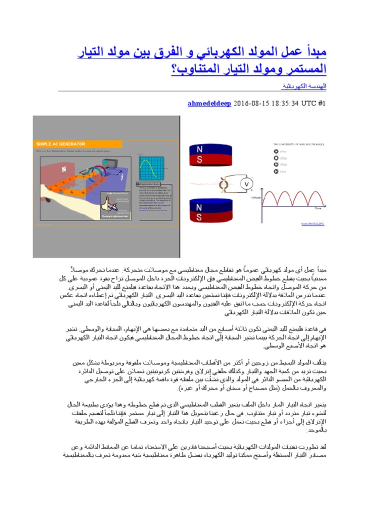 مبدأ عمل المولد الكهربائي و الفرق بين مولد التيار المستمر ومولد التيار المتن Doc