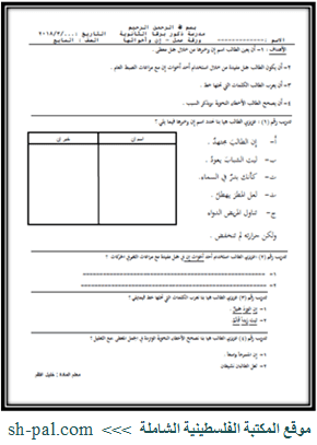 ورقة عمل لدرس إن وأخواتها للصف السابع الفصل الثاني المكتبة الفلسطينية الشاملة