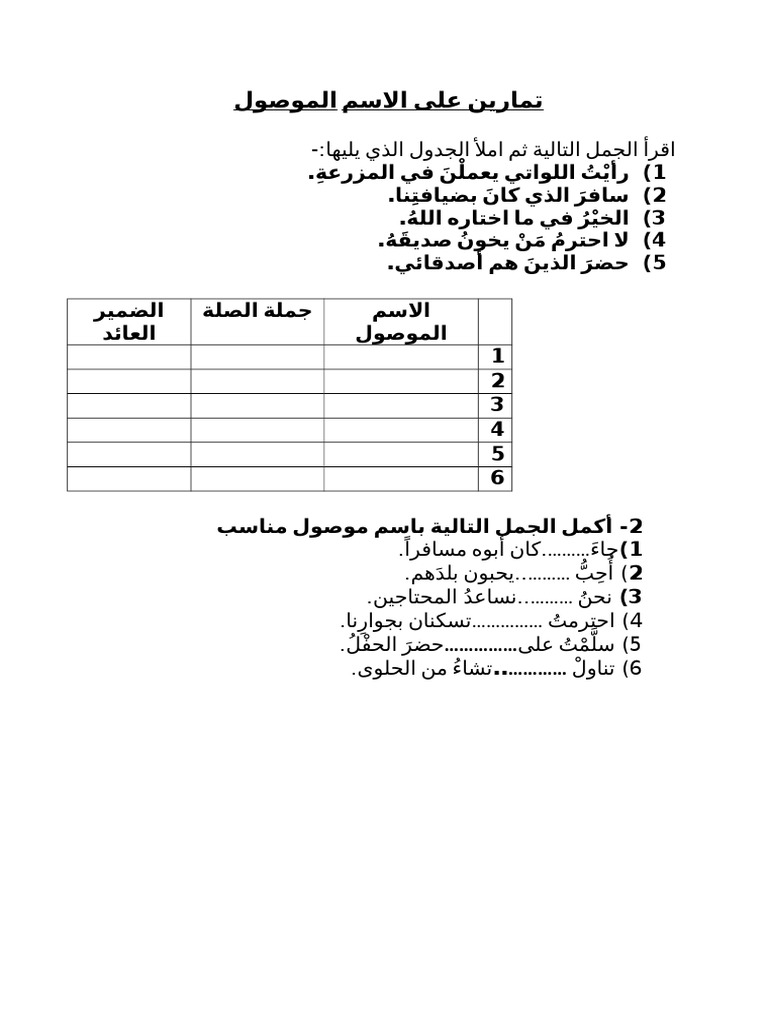 ورقة عمل الاسم الموصول