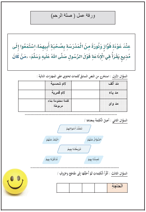 ورقة عمل درس صلة الرحم لغتي ثاني ابتدائي موقع كتبي