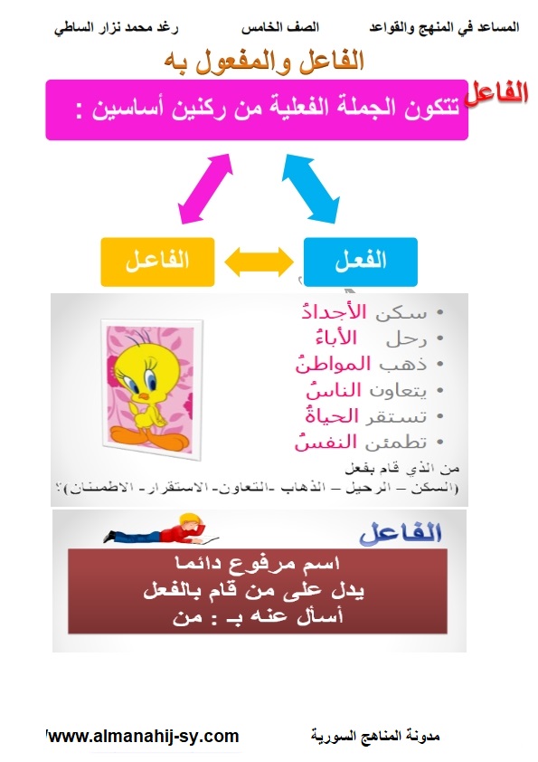 شرح درس الفاعل والمفعول به في اللغة العربية للصف الخامس الفصل الثاني