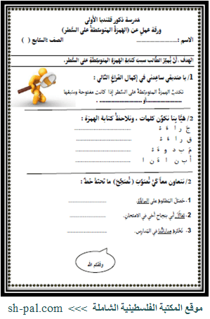 ورقة عمل لدرس الهمزة المتوسطة على السطر للصف السابع الفصل الأول المكتبة الفلسطينية الشاملة