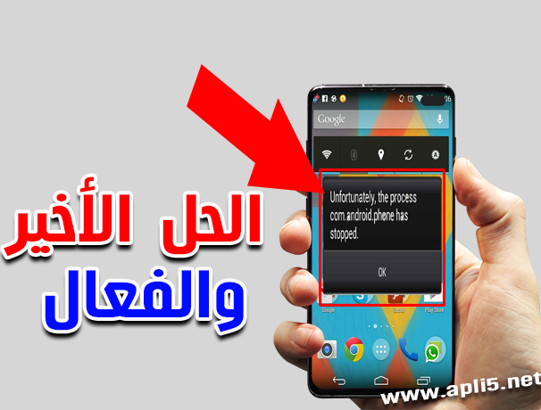 حل مشكلة تم ايقاف العملية Com Android Phone للاندرويد